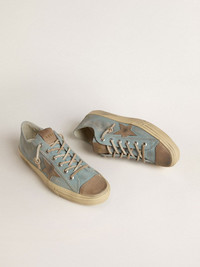 Beauty that lies in simplicity: in our V-Star sneakers, an essential shape meets stylish detail. This model with a light blue canvas upper features a dove-gray leather star. And white laces add a stylish finishing touch. DETAILS Item No. GMF00129.F007500.50934 - Light blue canvas upper - Dove-gray leather star - White laces - Vintage finish - Upper: 84% cotton, 16% cow leather - Lining: 54% cotton, 39% cow leather, 5% polyester, 2% textile polyurethane - Sole: 100% rubber - Handmade - Made in Italy
