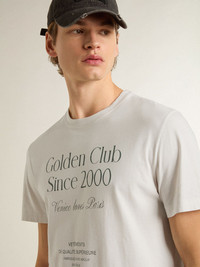 Inspired by the iconic Seventies, the carefree spirit of that era comes to life with the first drop of our Fall/Winter 25 collection. This white cotton short-sleeved T-shirt features the 'Golden Club Since 2000' green print on the front. DETAILS Item No. GMP01220.P002254.11616 - Journey Collection - Color: white - Short sleeves - 'Golden Club Since 2000’ green print on the front - Two little stars on the back - Main material: 100% cotton - Made in Italy The model is 183 cm tall and is wearing a size M.