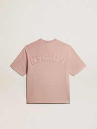 A unique, timeless collection that encapsulates the Golden Goose DNA, designed to remain with you every day, through thick and thin, come rain or shine. In powder-pink cotton with a distressed finish, this T-shirt with an Asian Market Exclusive fit features a raised reverse Golden logo on the back. DETAILS Item No. GUP01873.P001576.25235 - Color: powder pink - Reverse Golden logo on the back - Double gold star on the back - Relaxed fit - Asian Market Exclusive - Short sleeves - Distressed finish - Main material: 100% cotton - Made in Italy The model is 183 cm tall and is wearing a size M.