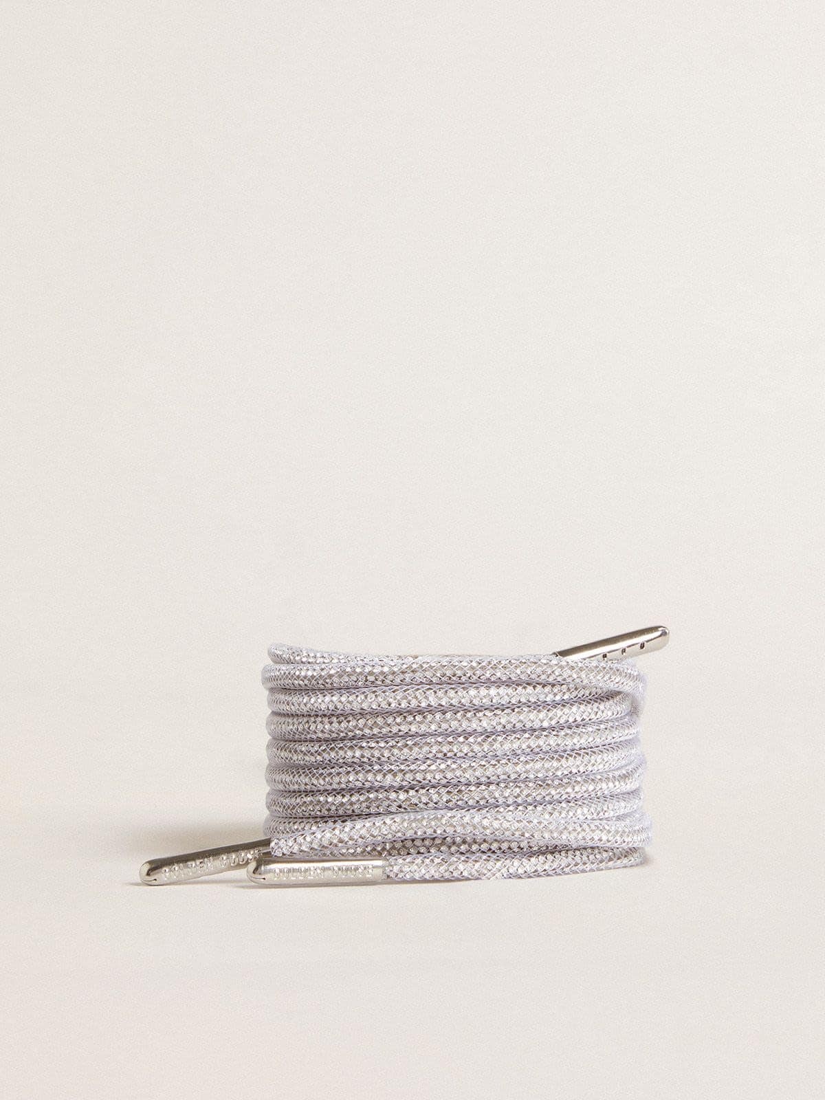 Personalize your sneakers and make them unique with the assortment of colors, finishes and exclusive details of our laces. Experiment with your pair and find alternative uses, wearing one as a bracelet or key chain. This model in silver cotton features silver-colored metal aglets. DETAILS Item No. GUF00234.F007382.70100 - Color: silver - Silver-colored metal aglet - Main material: 60% polyester, 40% cotton - Made in Italy