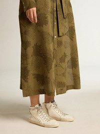 Skate soul, glamorous attitude. Our Slide sneakers take you straight to Venice Beach, between an ollie and a kickflip. This model with an off-white leather upper features a silver metallic leather star and an off-white leather heel tab. The off-white leather flash with antique gold metal stars with silver metallic leather trim, and the ice-gray laces complete the look. DETAILS Item No. GWF00115.F005160.10449 - Color: off-white - Silver metallic leather star - Off-white leather heel tab - Off-white leather flash with antique gold metal stars with silver metallic leather trim - Ice-gray laces - Vintage finish - Upper: 93% cow leather, 7% sheepskin leather - Lining: 35% cow leather, 34% cotton, 19% textile polyurethane, 7% polyester, 5% viscose - Sole: 100% rubber - Handmade - Made in Italy