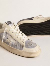 Stardan in white leather and mesh with blue metallic heel tab