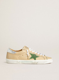 Super-Star LTD in beige leather with green suede star and silver foiled leather heel tab