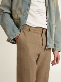 Tailored pants in sand-colored chevron linen blend