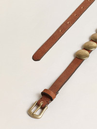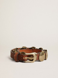 Trinidad belt in aged tan-colored leather with golden maxi studs