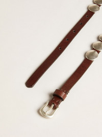 Trinidad thin belt in dark brown leather with silver studs