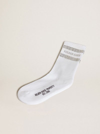 Unisex socks in white cotton with decorative crystals