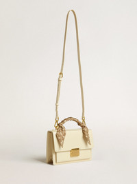 Functional yet sophisticated, our Venezia bag is a statement of Venetian elegance, inviting you to carry a piece of its soul wherever you go. In butter-colored boarded leather, this model features the unique addition of a silk scarf in a dove-gray paisley pattern. The double inside pocket and gold-tone hardware add the finishing touch. DETAILS Item No. 8050235947689 - Color: butter - Gold-tone buckle closure with side buttons - Double inside pocket - Inner card holder - Logo on the back - Adjustable shoulder strap with snap hook - Detail of dove-gray silk scarf - Main material: 100% cow leather - Lining: 100% cow leather - Scarf material: 100% silk - Size: 22 x 19 x 7.5 cm - Length of shoulder strap: 112 cm to fourth hole - Chain width: 1.5 cm