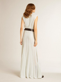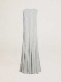 A collection created to be by your side at every moment, ready to accompany you on bright days and unforgettable adventures. This baby blue long dress features a V-neckline and a vertical see-through striped pattern. The sleeveless design and double star on the back add the finishing touch. DETAILS Item No. GWP02159.P001833.35153 - Color: baby blue - Long - Sleeveless - V neck - Vertical see-through striped pattern - Main material: 57% cotton, 43% viscose - Made in Italy The model is 177 cm tall and is wearing a size S.