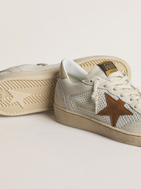 Women's Ball Star in white nappa and mesh with tobacco-colored nubuck star and beige heel tab