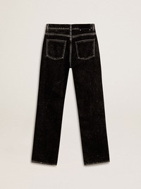 The third drop in our Fall/Winter 25 collection channels the funky glamor of the 1970s, a time when the night transformed into a canvas for unapologetic self-expression. These jeans are made of denim cotton and feature a straight leg and a black velvet-effect wash. The lived-in effect on the trims and five pockets add the finishing touch. DETAILS Item No. GWP02353.P002081.90100 - Journey Collection - Color: black - Straight leg - Velvet effect - Five pockets - Main material: 76% cotton, 24% polyester - Pocket lining: 65% polyester, 35% cotton - Made in Italy The model is 177 cm tall and is wearing a size 27.