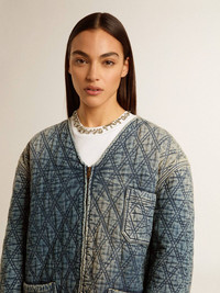 Women's blue quilted jacket in cotton denim with distressed finish