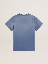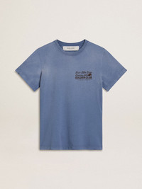 Women's faded light blue T-shirt with print on the chest