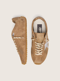 Track and field-inspired, with a Seventies flair. Day after day, our new Marathon sneakers are designed to keep you running after your dreams, paying homage to the marathon that is life. This women's model features a tobacco-colored suede upper illuminated by a silver printed star and a tobacco-colored nappa leather heel tab with silver details. The look is completed by cream-colored laces with vintage-effect tobacco-colored stripes and a starred outsole that make a truly unique impression. DETAILS Item No. GWF00892.F007406.15331 - Tobacco-colored suede upper - Silver printed star - Nappa leather heel tab with silver details - Cream-colored laces with vintage-effect tobacco-colored stripes - Vintage finish - Upper: 93% cow leather, 7% sheepskin leather - Lining: 44% cow leather, 22% cotton, 22% textile polyurethane, 6% polyester, 6% viscose - Sole: 100% rubber - Handmade - Made in Italy