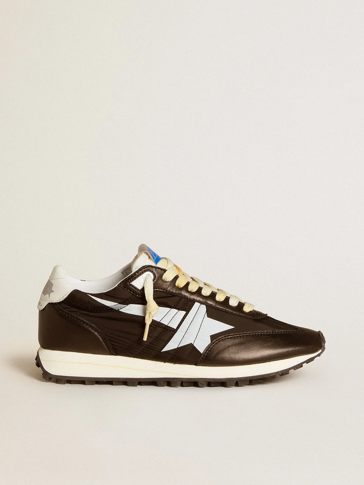 Track and field-inspired, with a Seventies flair. Day after day, our new Marathon sneakers are designed to keep you running after your dreams, paying homage to the marathon that is life. This women’s style features a nylon upper and a white star and heel tab. The look is completed by unevenly-dyed laces and a starred outsole which make a truly unique impression. DETAILS Item No. GWF00683.F005459.90167 - Black nylon upper - White star - White leather heel tab - Black nappa leather toe - Jacquard laces with unevenly-dyed effect - Upper: 37% cow leather, 34% polyester, 18% polyamide, 6% sheepskin leather, 5% polyurethane - Lining: 100% sheepskin leather - Sole: 100% rubber - Handmade - Made in Italy