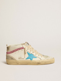 Women's Mid Star in leather with light blue star and fuchsia suede flash with platinum studs