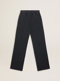 A collection with a casual soul but a versatile attitude: inspired by the Seventies, it has a timeless vintage appeal, suited to any occasion or look. Inspired by the world of tailoring, echoed by the stitched pleat on the front, these joggers in navy blue pure cotton feature a wide leg. The double silver star on the back adds the finishing touch. DETAILS Item No. GWP02073.P001774.90456 - Color: navy blue - Double silver star on the back - Wide leg - Three pockets - Main material: 100% cotton - Rib material: 100% cotton - Pocket lining: 100% cotton - Made in Italy The model is 177 cm tall and is wearing a size S.