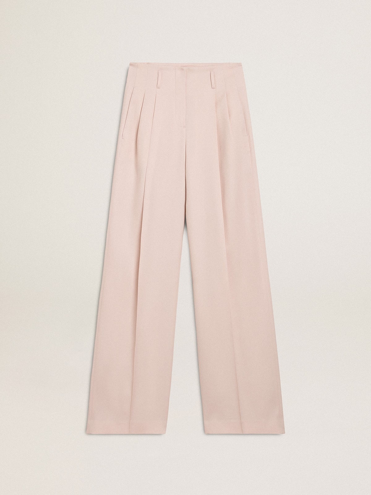 A collection inspired by the harmony of nature, where every detail flows with ease. These women's pink wool pants feature a high waist and tailored-style front stripes. DETAILS Item No. GWP01203.P001965.25235 - Journey Collection - Color: pink - High waist - Wide leg - Double star on the back - Main material: 100% virgin wool - Lining material: 100% cotton - Made in Italy The model is 177 cm tall and is wearing a size 40.