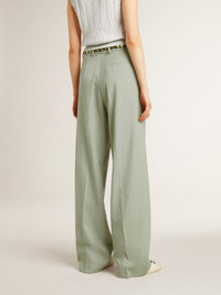 Women's pants in sage-green wool