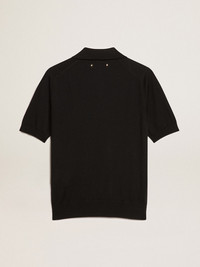 A unique, timeless collection that encapsulates the Golden Goose DNA, designed to remain with you every day, through thick and thin, come rain or shine. This women’s polo shirt in black merino wool features short sleeves and four central buttons. The detachable white patch with a finely embroidered letter G in red adds the finishing touch. DETAILS Item No. GWP01424.P001041.90100 - Golden Collection - Color: black - Four central buttons - Short sleeves - Detachable white patch with embroidered red letter G - Double gold star on the back - Main material: 100% wool - Made in Italy The model is 177 cm tall and is wearing a size S.
