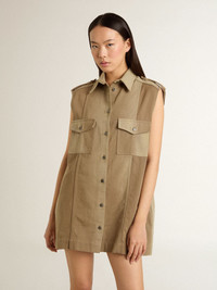 Women's shirt dress in sand-colored denim with military details