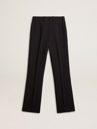 A love story to our home, Marghera. Where everything began. Our latest collection reflects the spirit of our birthplace, its contrasts, industrial soul, and manufacturing landscapes, weaving together inspirations from both the vibrant energy of workwear and the refined essence of traditional tailoring. In a black color, these wool-blend women’s pants feature a loose-fit straight leg and two appliqued little stars on the back. DETAILS Item No. GWP01894.P001619.50866 - Journey Collection - Color: black - Double star on the back - Loose fit - Straight leg - Main material: 70% viscose, 30% wool - Pocket lining: 100% cotton - Made in Italy The model is 177 cm tall and is wearing a size 40.