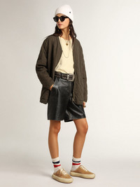 Your new moment to detach from reality and fly like never before. Wrapped up in that incredible sensation of lightness from the very first second, making room for the most audacious version of yourself. Finally setting your style free, emptying your mind. The Space-Star shoes feature the extra-cushion sole and insole padded with memory foam, guaranteeing unparalleled comfort starting from the very first step. In tobacco-colored suede, this women's sabot version stands out owing to its perforated tone-on-tone star and soft leather lining. The cream-colored laces complete the look. DETAILS Item No. GWF00382.F003329.55353 - Upper in tobacco-colored suede - Perforated tone-on-tone star - Leather lining - Cream-colored laces - Lived-in finish - Upper: 100% cow leather - Lining: 81% sheepskin leather, 19% cotton - Sole: 100% rubber - Made in Italy