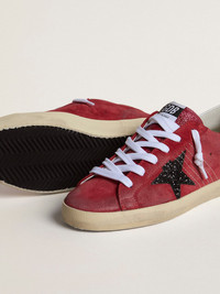 Women’s Super-Star in red suede with glitter star and white heel tab