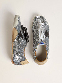 Women's True-Star in silver sequins with black star and beige leather heel tab