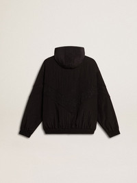 Women's windcheater in black nylon with tone-on-tone crystals