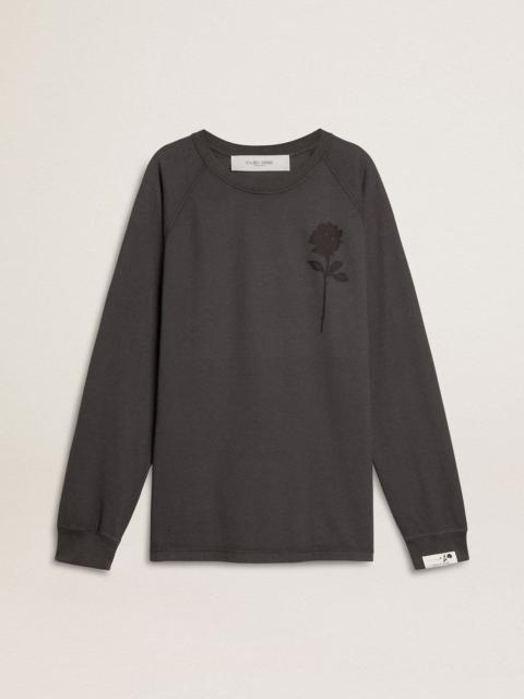Men's T-shirt in anthracite-colored cotton with print on the chest