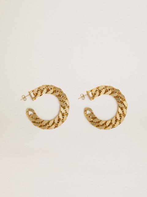 Chain hoop earrings with antique gold colored braided links