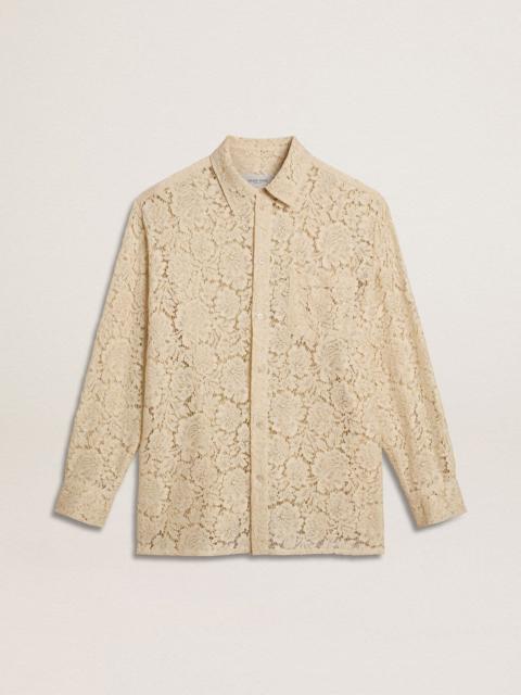 Men’s beige crew neck sweater with ‘Golden’ lettering on the back