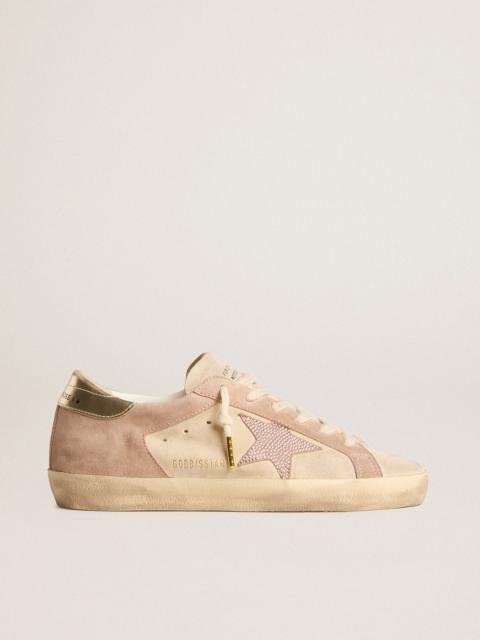 Super-Star in beige suede and multicolored crystals with cream-colored leather star and heel tab