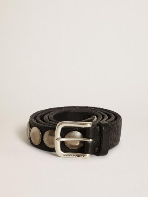 Black Trinidad belt in washed leather with studs