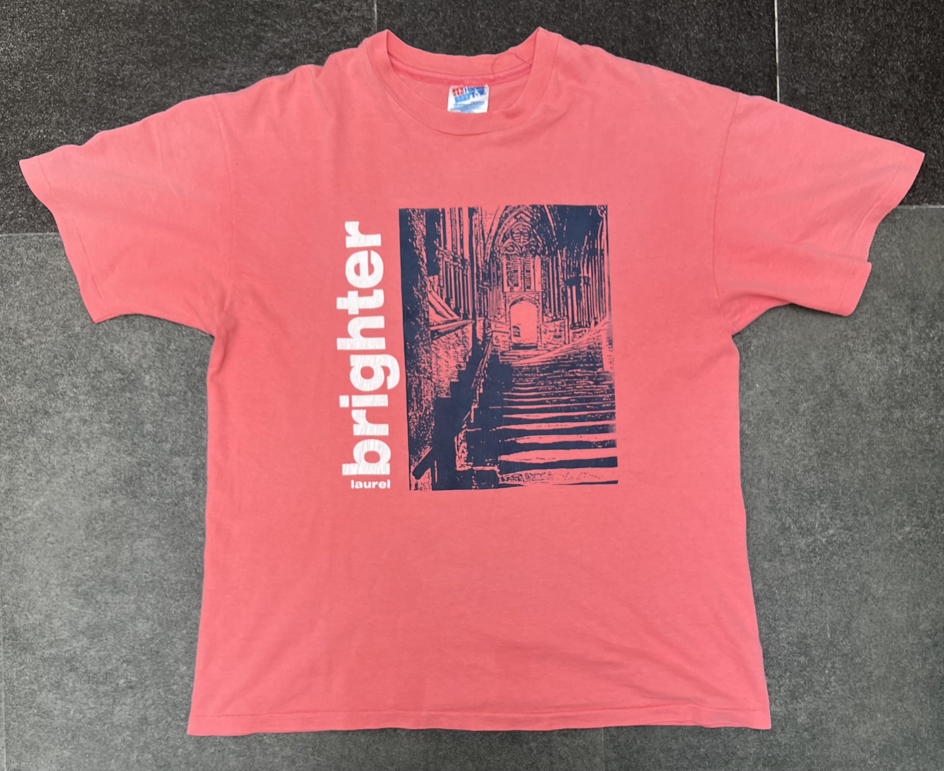 Brighter Laurel Tees Color: Pink TAG : Hanes Beefy SIZE ON TAG : L Condition : Used Item / Still Good For Wear FADING there is a hole in the left sleeve seam Used Item As Seen Detail In The Photo Worldwide Shipping Asked Me For More Details Please Check and Read details Before Purchase #brighter #brighterlaurel #bandtees #vintage #hanes