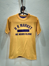 H R Market Reversible T-shirt MEASUREMENT: (Size : please refer to actual measurement given and compared with your best fitting clothes ) Size on tag: Armpit to armpit: 17 inches Length: 24 inches Material : 50% cotton, 50% polyester Condition : 7.5/10 PAYMENT & SHIPPING: ✔ Accept "PAYPAL" Only. Please drop your contact number & email after purchasing the item(s). This is important for the shipping purpose. ✔ This item will be ship along with Tracking Number within 3 working days after received a completed payment. ✔ Expected shipping period takes within 7 to 18 working days to arrive to its destination around the world. ✔ Please don't worry about Custom tax fees during Shipping because I always declared all items as a Gift and wrote the value lower than original price usually just $10 only. DEAR VALUED CUSTOMER: ✔ All Measurements were been measured flat on the floor. ✔ Please don't expect this item condition is 100% like new unless I have mention it. ✔ NO Return/Refund. Please do not hesitate to contact me if you have any inquiries. It’s my great pleasure to have a conversation with customers. ATTENTION: Please pay close attention to measurements provided. Do not rely on tag size as pre-worn items may have been altered, stretched or shrunk & vintage sizes do not directly translate the modern sizes. The best way to ensure a correct fit is to compare our measurements with the measurements of a similar item that you know fits you well. Please enlarge the photos for clearer image. ** Please do not expect the shirt in mint condition unless stated. It’s because vintage and used items may have sign of wear. Thank you very much for your visit. 😊