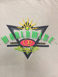 RARE Vintage 1993 Ocean Pacific Single Stitch Made in USA T-shirt MEASUREMENT: (Size : please refer to actual measurement given and compared with your best fitting clothes ) Size on tag: M Armpit to armpit: 20.5 inches Length: 25.5 inches Material : Cotton Condition : 6/10 (faded vintage condition-refer picture) PAYMENT & SHIPPING: ✔ Accept "PAYPAL" Only. Please drop your contact number & email after purchasing the item(s). This is important for the shipping purpose. ✔ This item will be ship along with Tracking Number within 3 working days after received a completed payment. ✔ Expected shipping period takes within 7 to 18 working days to arrive to its destination around the world. ✔ Please don't worry about Custom tax fees during Shipping because I always declared all items as a Gift and wrote the value lower than original price usually just $10 only. DEAR VALUED CUSTOMER: ✔ All Measurements were been measured flat on the floor. ✔ Please don't expect this item condition is 100% like new unless I have mention it. ✔ NO Return/Refund. Please do not hesitate to contact me if you have any inquiries. It’s my great pleasure to have a conversation with customers. ATTENTION: Please pay close attention to measurements provided. Do not rely on tag size as pre-worn items may have been altered, stretched or shrunk & vintage sizes do not directly translate the modern sizes. The best way to ensure a correct fit is to compare our measurements with the measurements of a similar item that you know fits you well. Please enlarge the photos for clearer image. ** Please do not expect the shirt in mint condition unless stated. It’s because vintage and used items may have sign of wear. Thank you very much for your visit. 😊