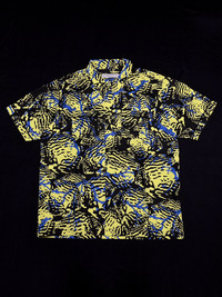Rich in cotton, the resort style shirt is wrapped in a bright neon and blue 'fish camo', taking inspiration from colourful sea creatures. Whether worn by itself or thrown over a tee for a more relaxed look, this unique design promises to brighten up any everyday look. / 100% Cotton / 2 Patch Pockets / Camp Collar / Woven Brand Tab / Button Closure Size: Large Color: Yellow / Camo * Dedicatedly take care of all products before shipping to customer. Payment - Paypal only. - NO Returns / Exchanges. - *** Worldwide shipping. - *** Low shipping cost. - *** Pls give your phone number after purchase. - *** Please check my other items and follow my shop for regular updates. - *** I wish you a pleasant and reasonable shopping.