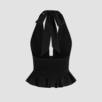 Cider Halter neckline rivet ruffle hem crop tank top Size L