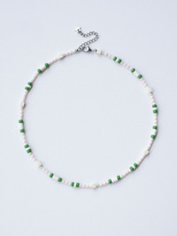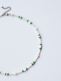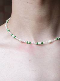 Cute Green and Pink Handmade Beaded Necklace 16.1in