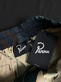 Deadstock By Parra Distorted Camo Shorts Green Large Crafted by the dynamic Dutch label by Parra, the Distorted Camo Jacket is a wearable piece of art with Parra's signature abstract twist. Made for urban explorers and designed with inspiration from '90s rave culture, this cotton jacket features an elasticated waist for comfort, side and cargo pockets for functionality, and distinctive embroidered branding. Condition: Brand New Size: Large Measurements: Waist 78cm / Inseam 36cm / Leg Open 32cm / Front Rise 20cm Color: Green / Brown * Dedicatedly take care of all products before shipping to customer. - - - **Please see my other listings for more styles. **Message me with any inquiries - - - ✨Dispatch in 4 days ✨NO Returns / Exchanges. ✨Worldwide shipping. ✨Please check my other items and follow my shop for regular updates. ✨I wish you a pleasant and reasonable shopping. #hype #rare #deadstock #hiphop #drill #byparra