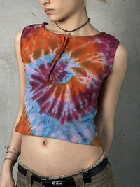 Deadstock Nepal Handmade Tie Dye Swirl Multicolor Crop Top
