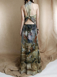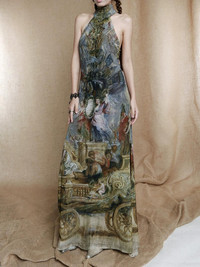 This long, sleeveless dress features a halter neckline and a flowing silhouette. It is decorated with a detailed, all-over print that resembles a classical painting, depicting figures in a historical or mythological setting. Condition: Brand New Size & Measurements S: Waist 62cm / Hip 90cm / Length 140cm M: Waist 66cm / Hip 94cm / Length 141cm Color: Multicolor * Dedicatedly take care of all products before shipping to customer. - - - **Please see my other listings for more styles. **Message me with any inquiries - - - ✨Dispatch in 4 days ✨NO Returns / Exchanges. ✨Worldwide shipping. ✨Please check my other items and follow my shop for regular updates. ✨I wish you a pleasant and reasonable shopping. #deadstock #fairy #y2k #hype #rare