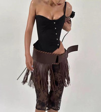 Designer - Y2K Edgy Chunky Modern Belt, Tassel Wide Strap Waistband