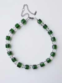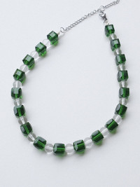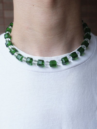 Green Crystal Glass Beads Handmade Beaded Necklace 16.1in