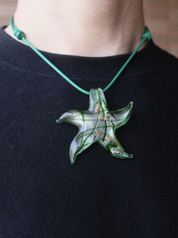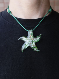 Handmade Lampwork Glass Starfish Pendant Adjustable Necklace