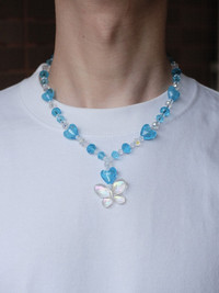 It‘s made of Glass Beads, Silver Foil, Heart Glass Beads, Acrylic Butterfly Pendant, Nylon Monofilament. Length: 48 cm/18.9 in Adjustable chain: 5 cm/1.9 in 🌼·Each item is individually packed with box and shipped with care. 🌼·Items may vary ever so slightly to the image as they are all handmade. 🌼·Perfect gift for yourself and loved ones, contact me for free gift card. 🌼·No return and refunds. 💌Care: As all necklaces are handmade with natural materials. Contact with liquids may affect their durability, even salty water, or your own sweat for prolonged exposure. Please: - Remove before swimming, bathing, sleeping, exercising, or any activity that may expose it to moisture (especially if there are crystals in your necklace!!) - Do not tug or pull on it. Payment - Palypal only. - NO Returns / Exchanges. - NO Refunds. - *** Worldwide Free shipping. - *** Pls give your phone number after purchase. - *** Very low express shipping all over the world. - *** Please check my other items and follow my shop for regular updates. - *** I wish you a pleasant and reasonable shopping.