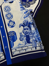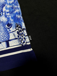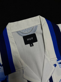 Modeled after the ornate and iconic design of classic Las Vegas hotels, the Full House Resort Shirt adds Big Boss Rabbit and custom car artwork to a resort wear staple in a bold all-over rayon print. • 100% rayon camp collar short sleeve resort shirt • All-over custom sublimated artwork • Button-down front w/ "HUF WORLDWIDE" engraved buttons • Side vent slits at hem • HUF woven label at interior neck Condition: Brand New Size: Medium Fabric: 100% Cotton Color: White/Blue Payment - Paypal only. - NO Returns / Exchanges. - *** Worldwide shipping. - *** Low shipping cost. - *** Pls give your phone number after purchase. - *** Very low express shipping all over the world. - *** Please check my other items and follow my shop for regular updates. - *** I wish you a pleasant and reasonable shopping.