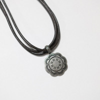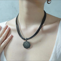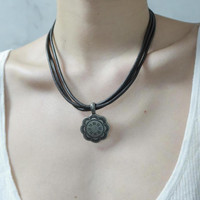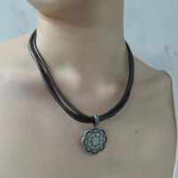 Brand new, never worn. Length: 46 + 3 cm extender Pendant Size: 4 x 3 cm Material: Genuine leather All vintage items were properly disinfected and I will check again before dispatching. - - - Please see my other listings for more styles. Message me with any inquiries - - - ✨Shipped with sealed packaging ✨Perfect for gifting ✨Worldwide shipping ✨Dispatch in 3 days ✨No return/exchange - - - Tags: fairy / modern / collar necklace / gift / birthday / Christmas / vintage / unisex / minimalist / holiday / evening #fairycore #leather #vintage #y2k #wasteland VTDN0100